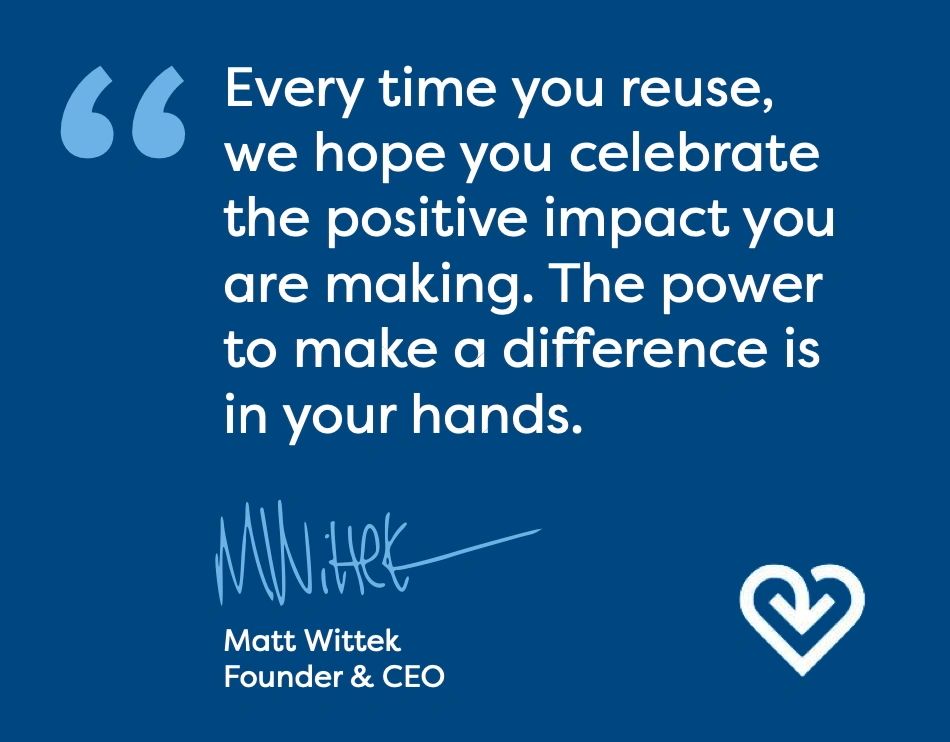 Choosing to reuse is a simple act of generosity that shows love for people and the planet. Over the past ten years, our community has eliminated 8+ million single-use bottles, cups, and bags.